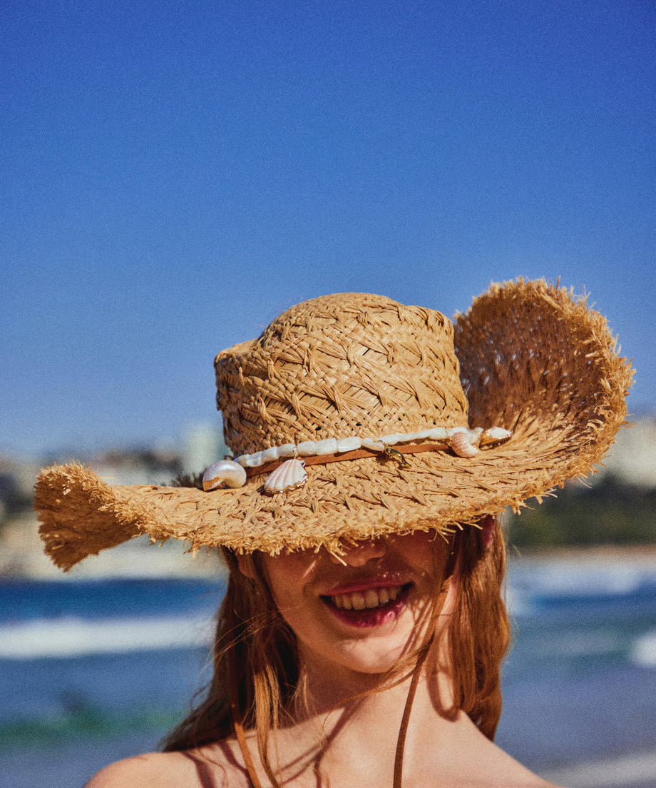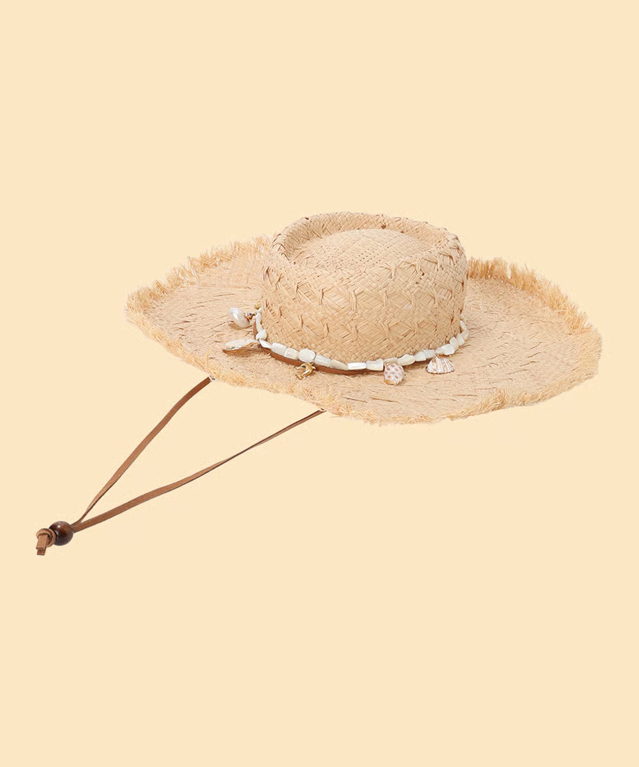 shell charm raffia hat