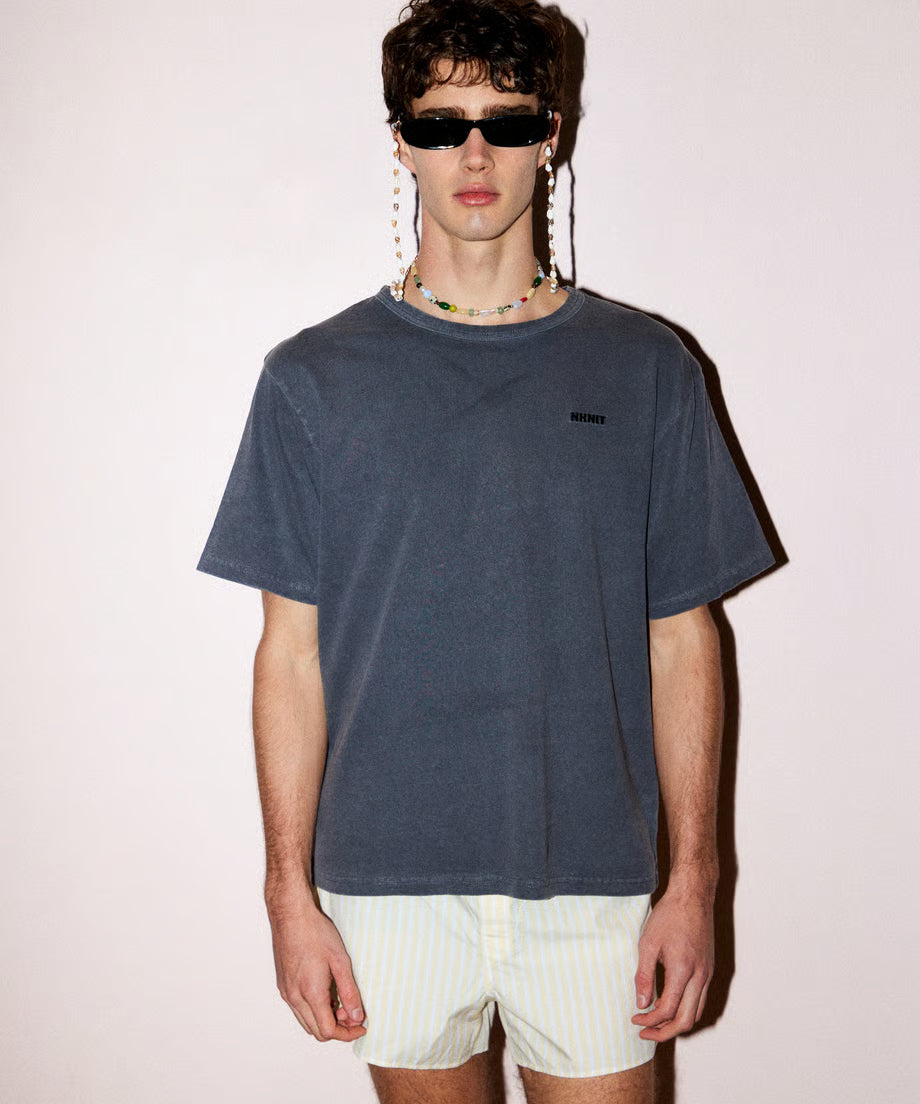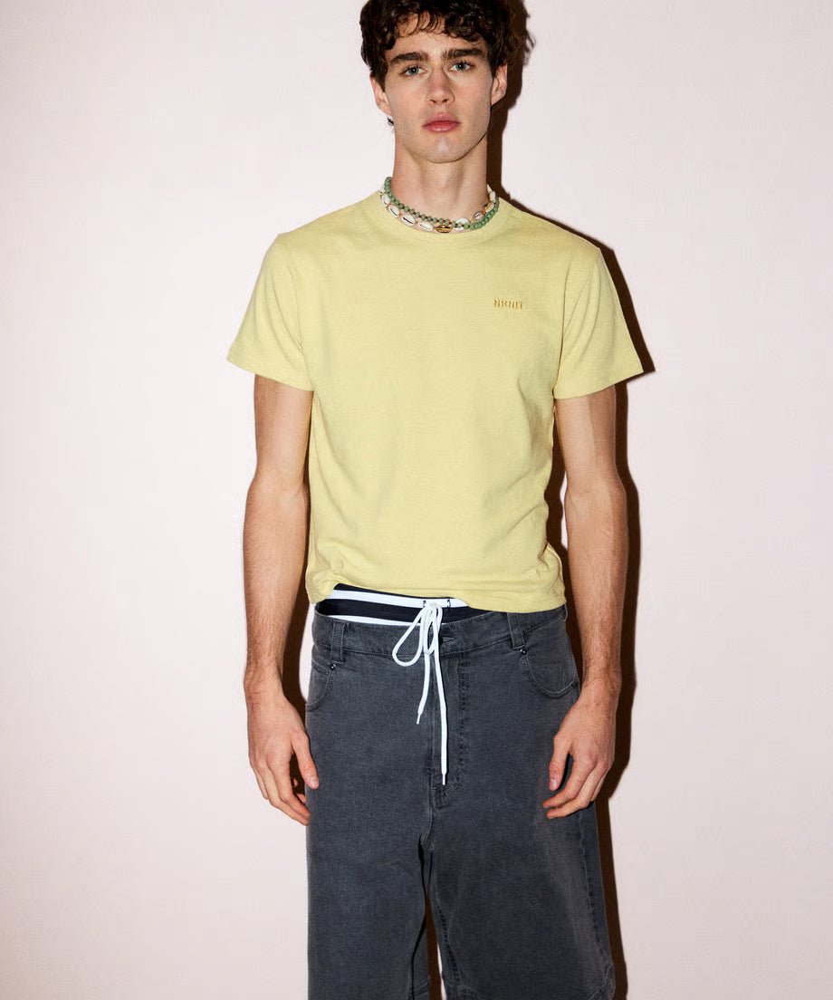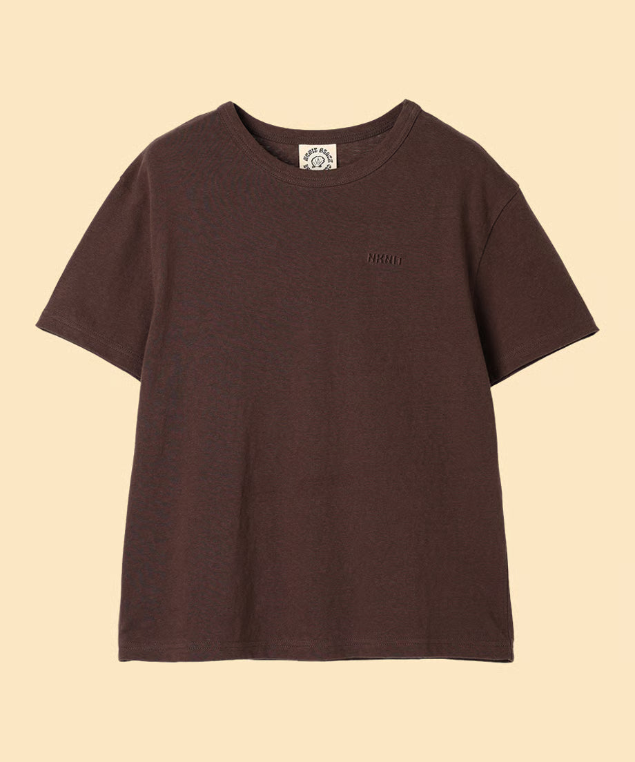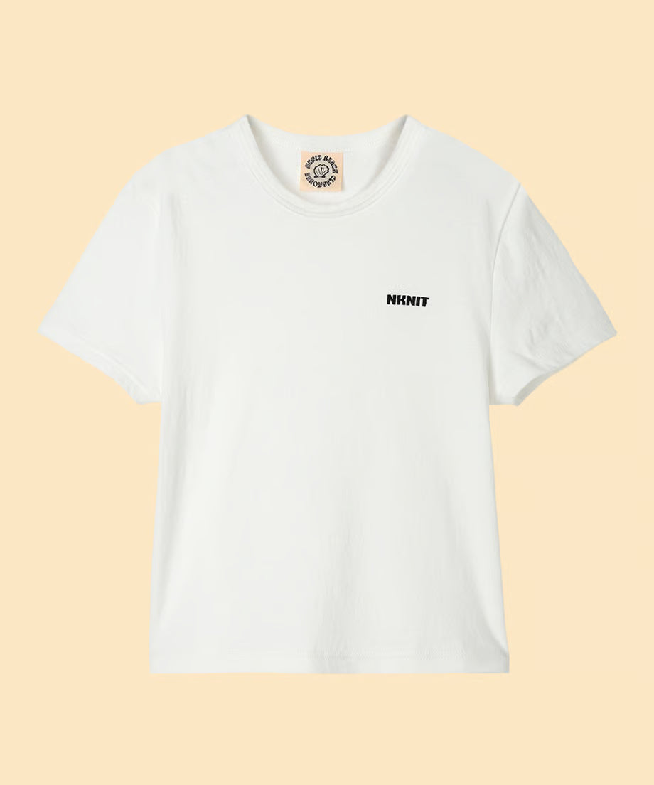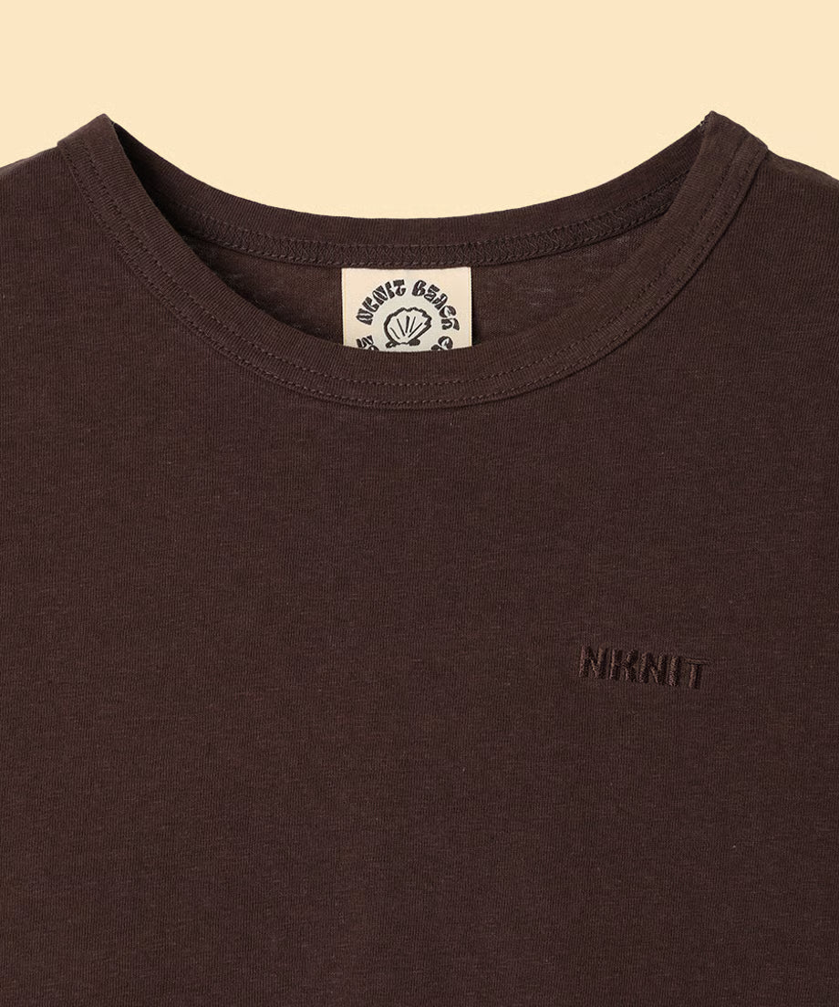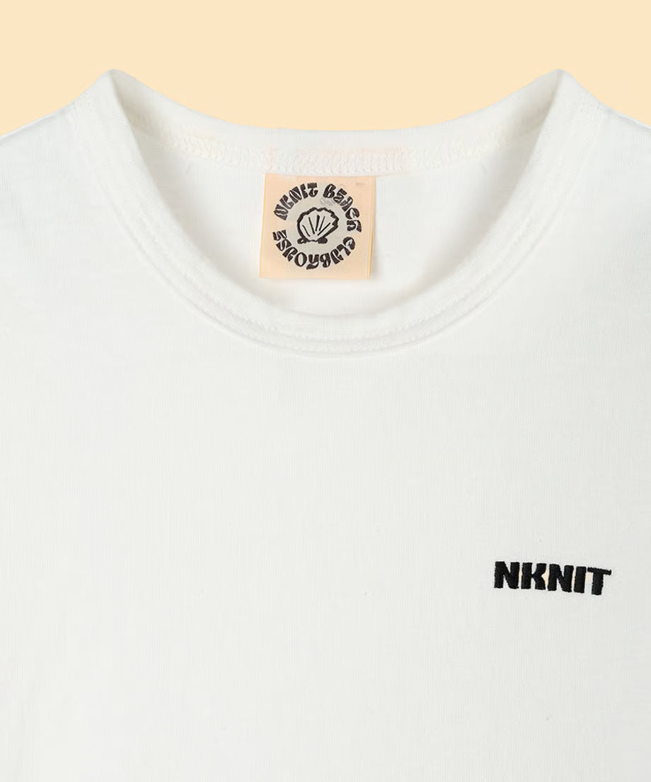 胸元にシンプルなNKNITロゴの刺繍デザイン。